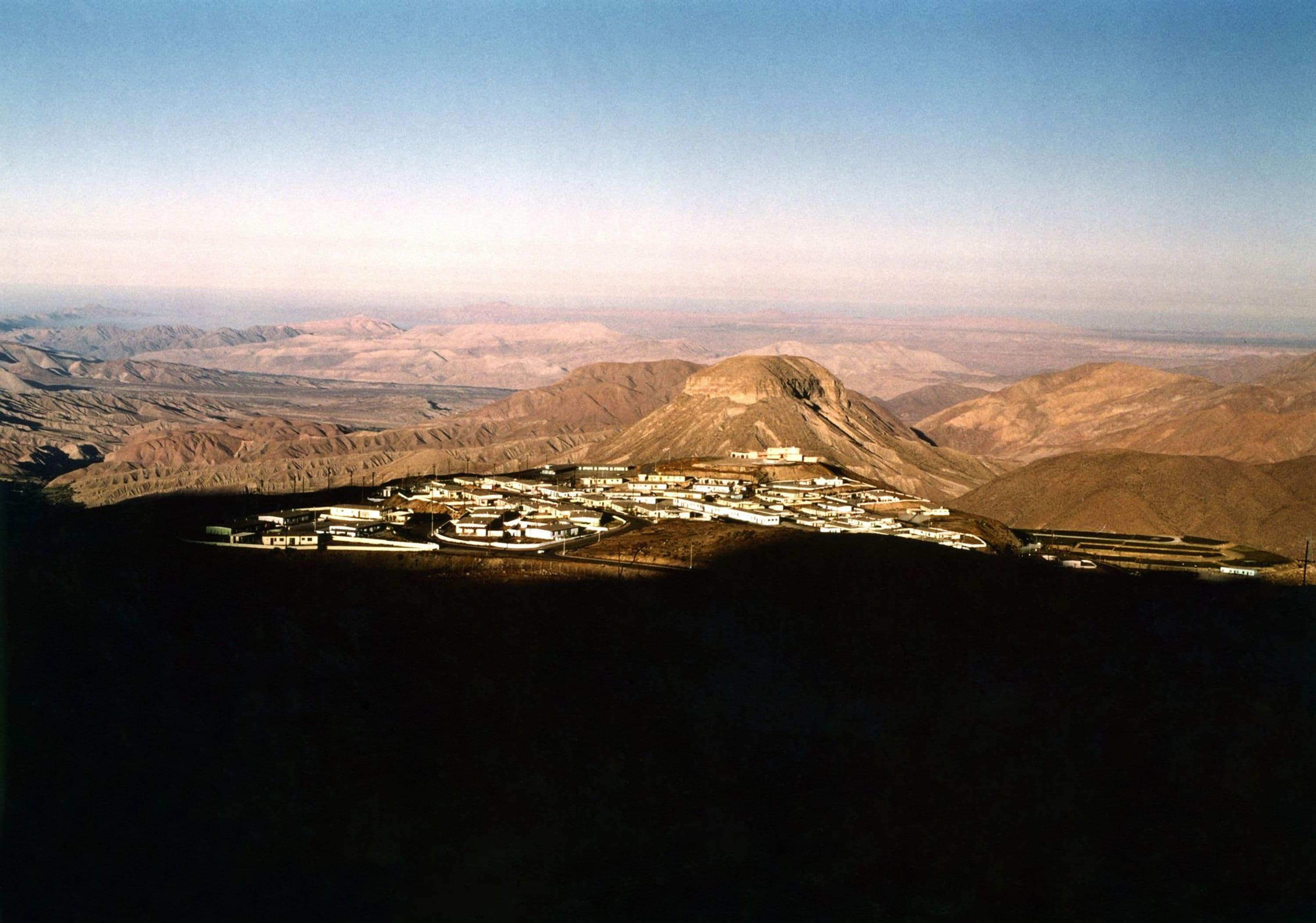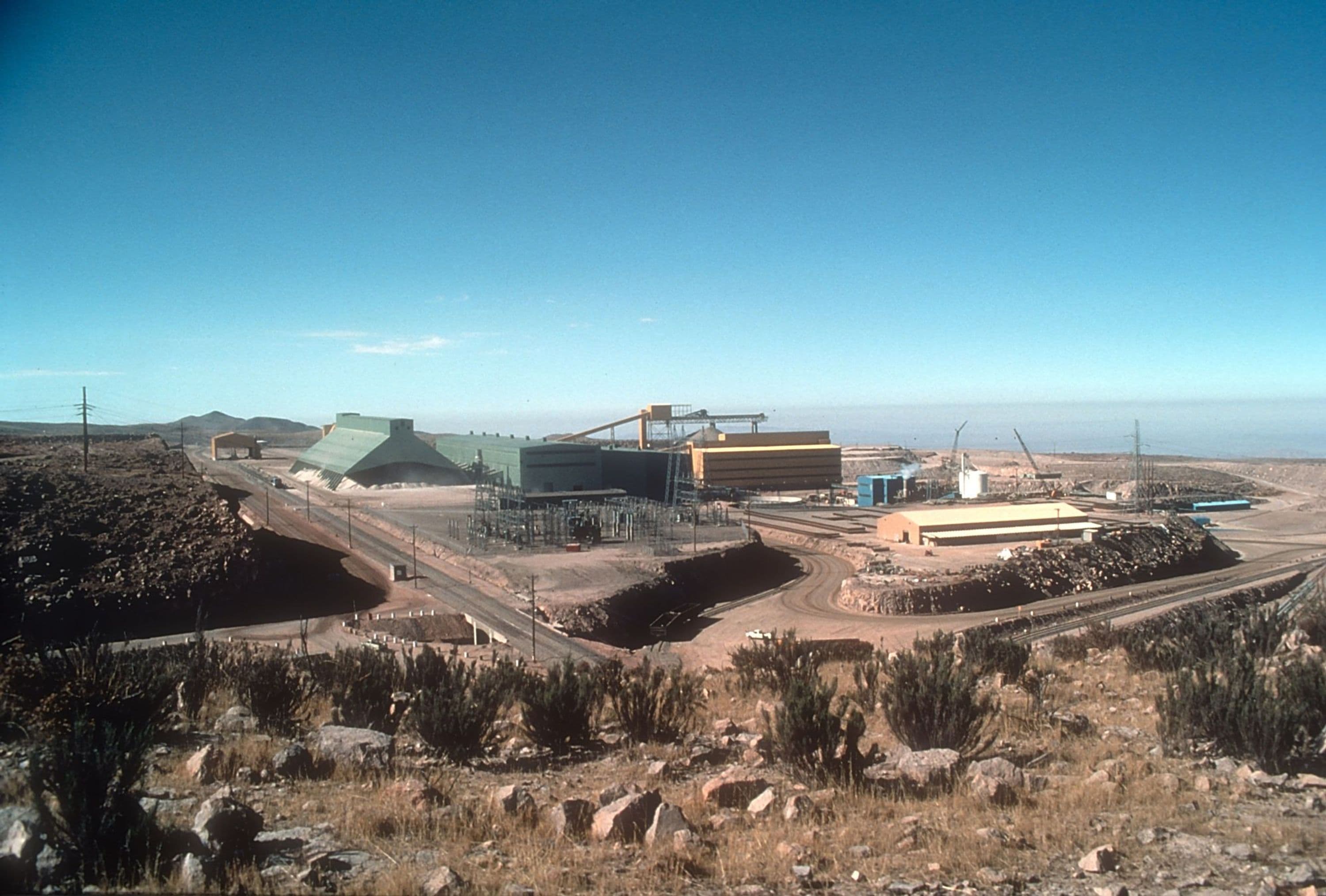 The remote and expansive desert site, where no roads, housing, communications or utilities existed, required all the infrastructure and industry to be constructed. The superstructure included the mining operation, crushers, grinding circuits, flotation, tailings thickeners, smelters and power plants.
