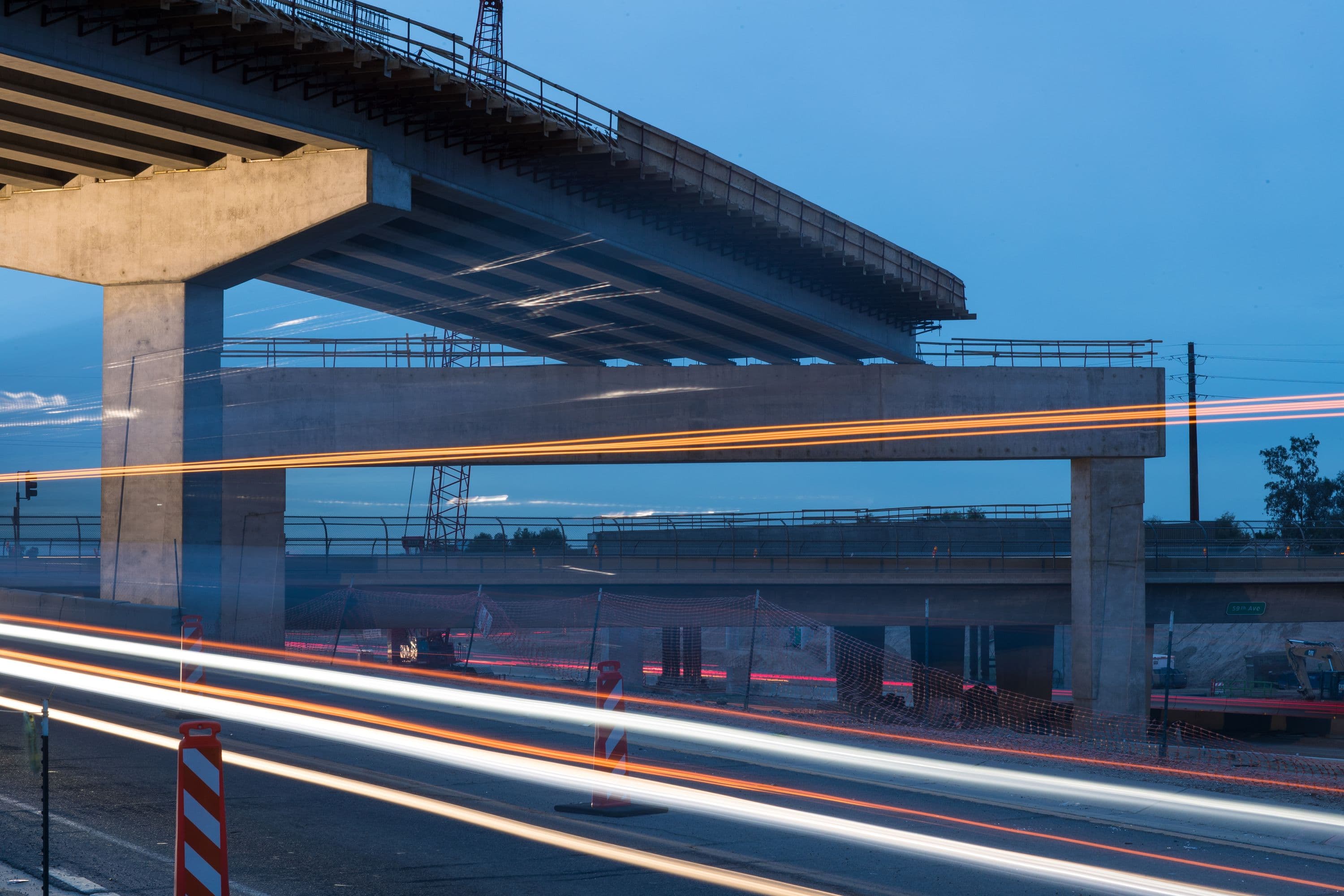 The project includes 46 new bridges, 15 interchanges, 12 miles of sound wall and 22 miles of the new 202 freeway, as well as 4.5 miles of tie-in freeway work in the I-10 Papago Segment.
