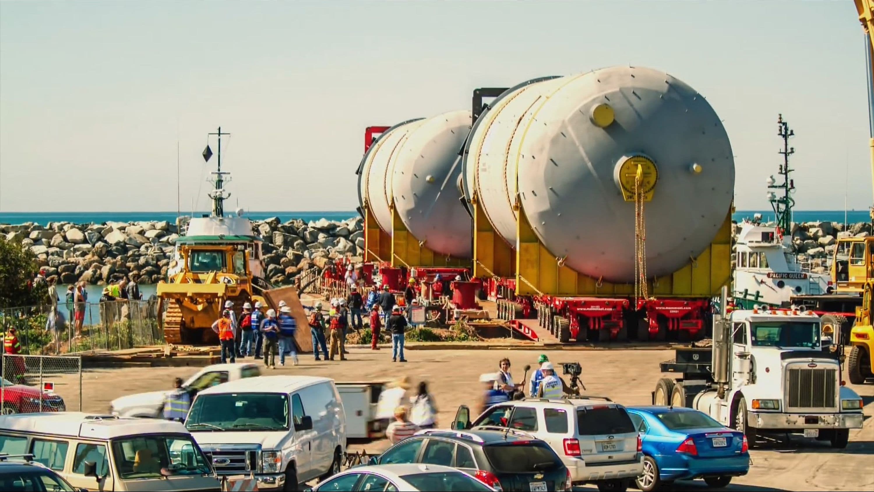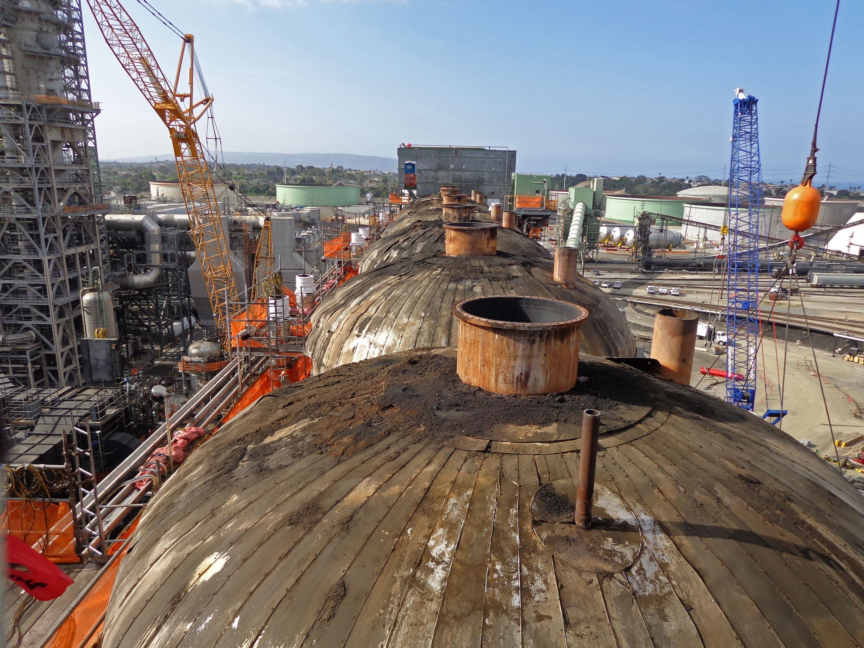 The new coke drums, which are three times as heavy as the Space Shuttle Endeavor, were installed. A 1-million-pound, six-derrick structure and cutting deck that covered the coke drums were also removed. The removal took place in one lift, with a 400-foot-tall crane; the largest ever brought to Southern California.