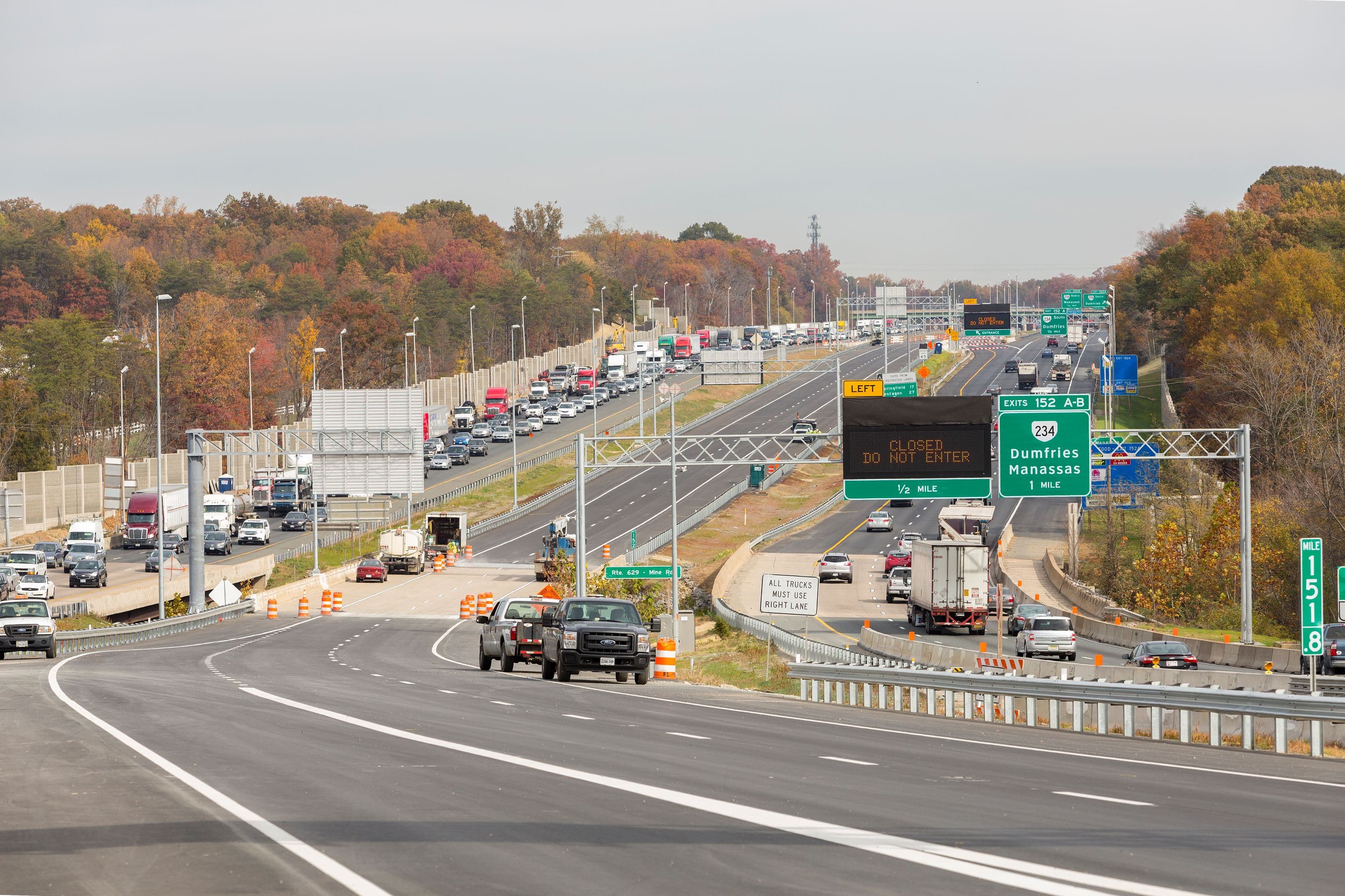 The 95 Express Lanes span 29 miles from just north of the Capital Beltway located outside the nation's capital and travel along Interstate 95 through three counties to Garrisonville Road in Stafford. The project was built in just 29 months and brought the most significant changes to the I-95 corridor in a generation.