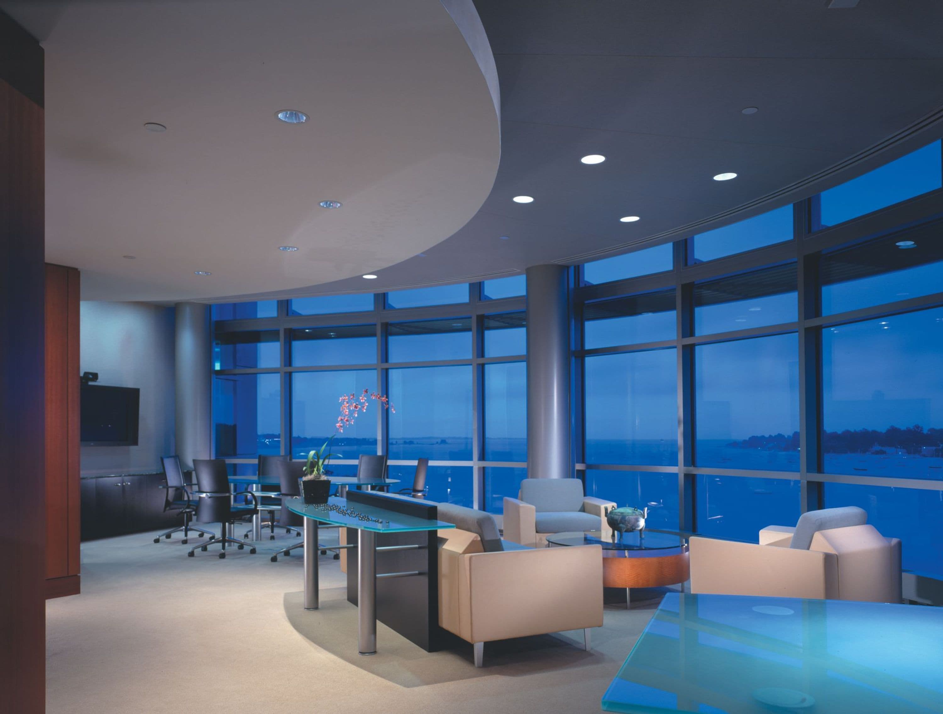 The overall facility integrates state-of-the-art technology systems such as 24 fiber-optic local area networks (LANs) and wide area networks (WANs) for telephone, data and audio-visual systems; individual control of more than 1,800 personal office environments; a user-friendly, energy-efficient task/ambient lighting system; 16 oversized elevators; and two escalators.