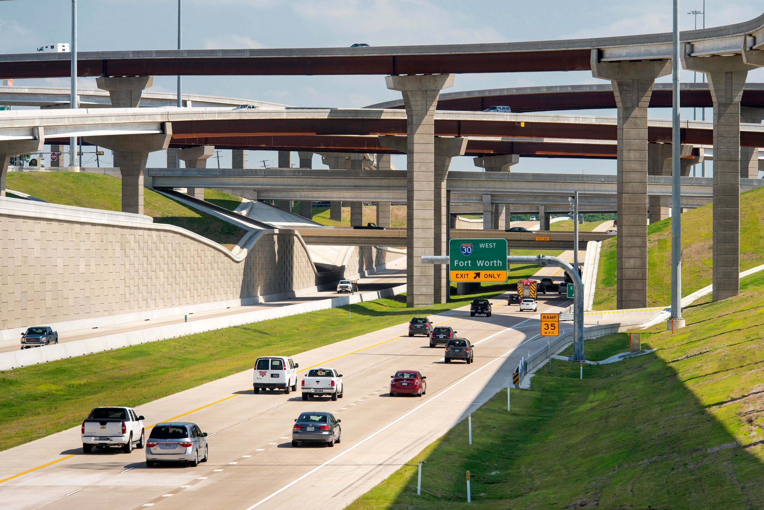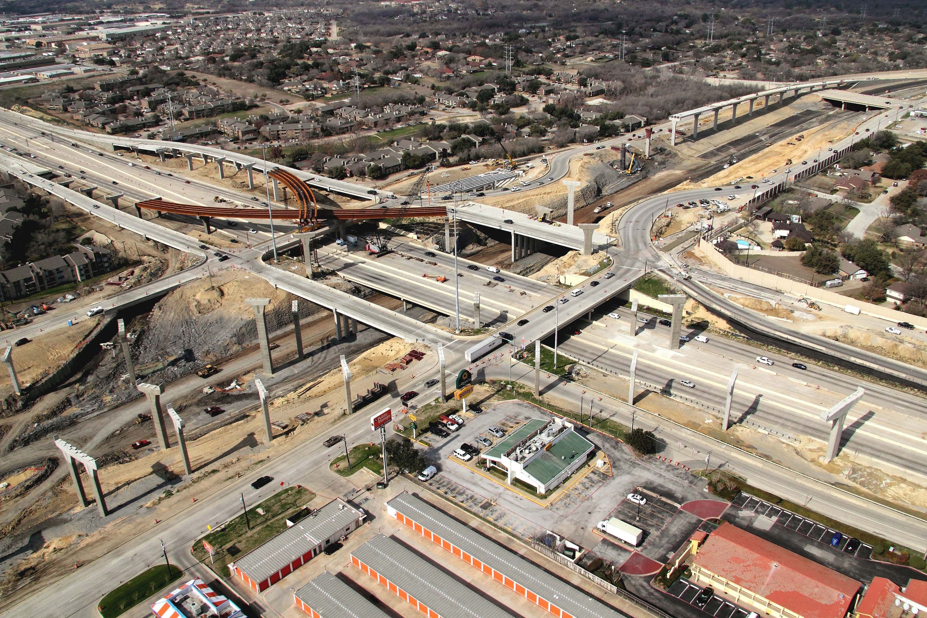 The multi-level interchange at IH 20 includes a three-leg, four-level interchange with four direct connector ramps. At the IH 30 interchange, the improvements comprise a fully directional, five-level interchange with eight direct connector ramps consisting of either one or two lanes.