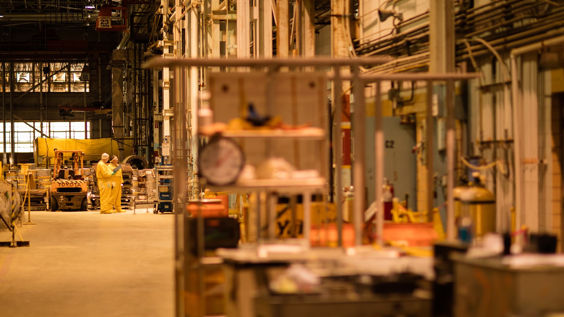 Today, three main process buildings, each with a footprint of more than 30 acres, house thousands of pieces of uranium enrichment equipment and hazardous waste.